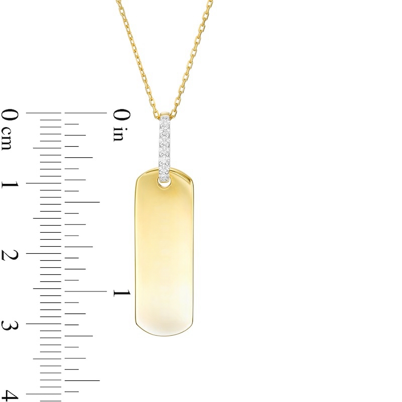 Wear your values with pride with this statement-making diamond pendant. Crafted in warm 10K gold, this petite tag features the word inscribed vertically along the center. Diamonds line the bail for a hint of sparkle. Captivating with 1/20 ct. t.w. of diamonds and a bright polished shine, this pendant suspends along a 16.0-inch cable chain with 2.0-inch extender that secures with a spring-ring clasp. This exclusive fine jewelry collection inspires you to wear your strength, confidence and power.