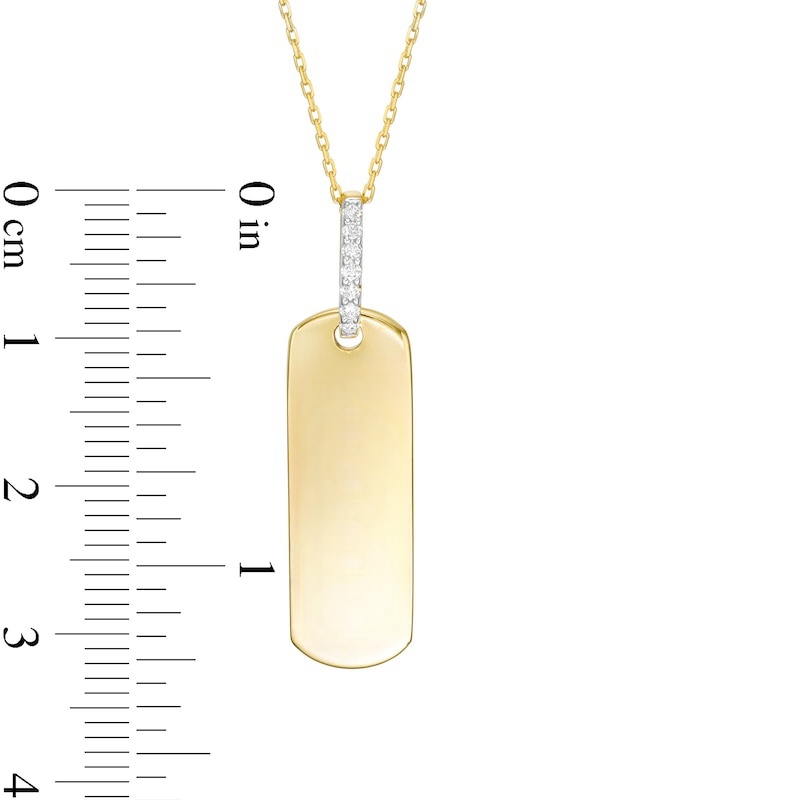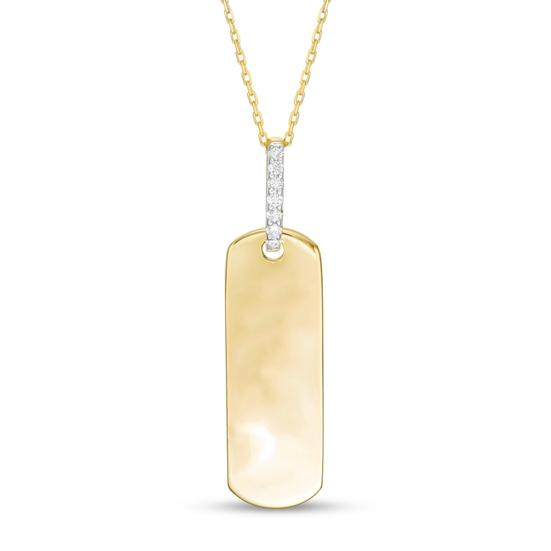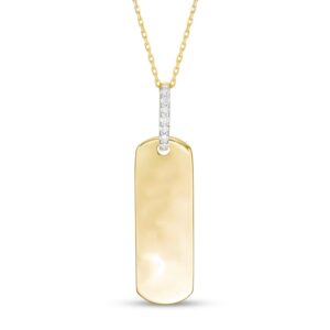 Wear your values with pride with this statement-making diamond pendant. Crafted in warm 10K gold, this petite tag features the word inscribed vertically along the center. Diamonds line the bail for a hint of sparkle. Captivating with 1/20 ct. t.w. of diamonds and a bright polished shine, this pendant suspends along a 16.0-inch cable chain with 2.0-inch extender that secures with a spring-ring clasp. This exclusive fine jewelry collection inspires you to wear your strength, confidence and power.