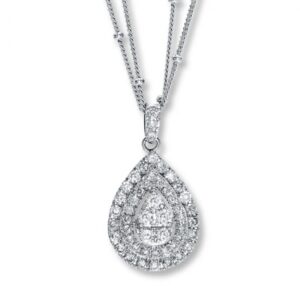Multi-Diamond Drop Necklace 2 ct tw Round & Marquise-cut 14K White Gold 18″